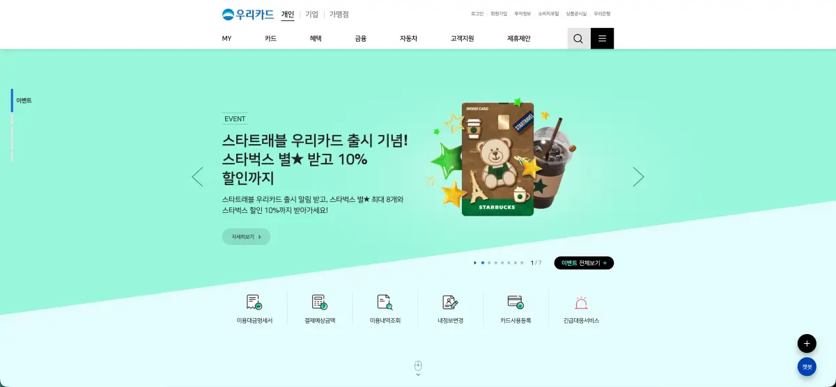 우리카드 홈페이지에서는 카드 사용과 관련된 모든 정보를 확인할 수 있습니다.