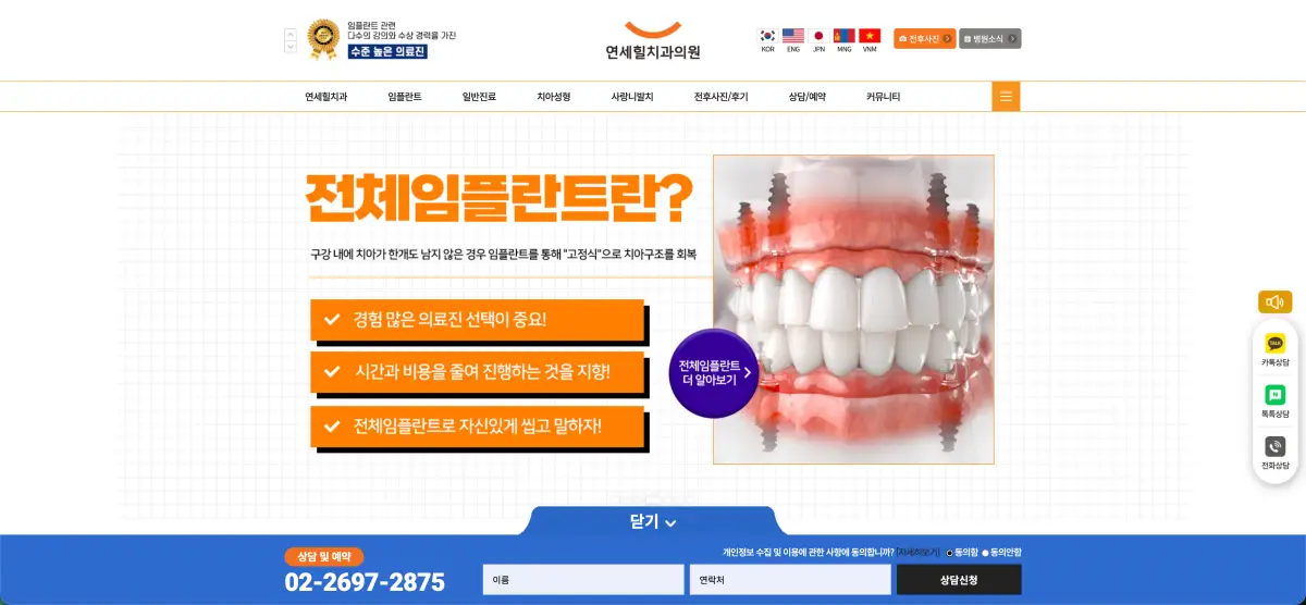 전체 임플란트 상담, 진료 안내, 예약 방법 등은 위 공식 홈페이지에서 확인할 수 있습니다.
