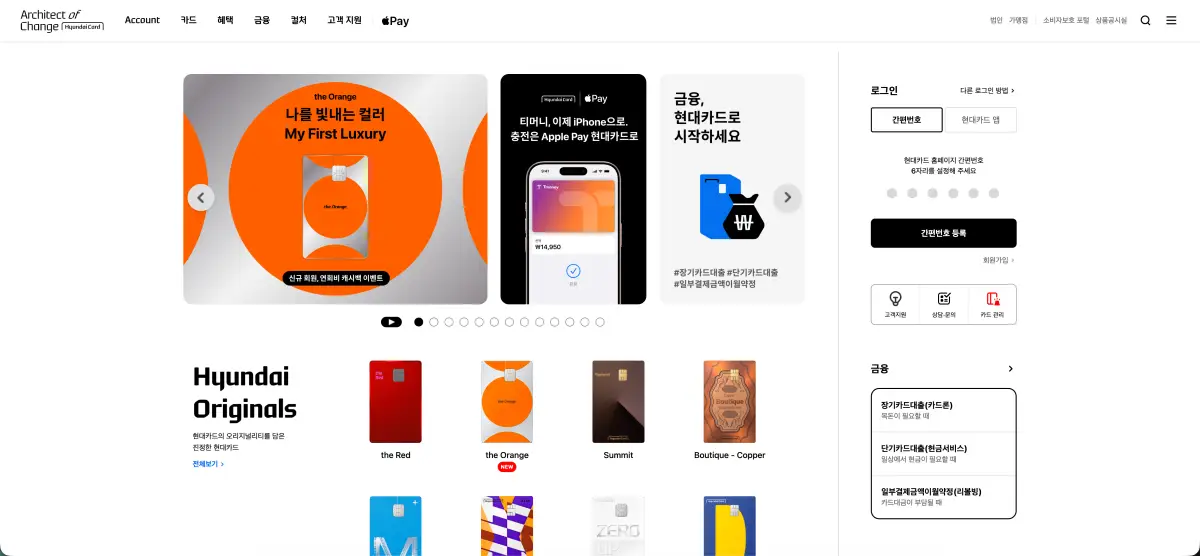 현대카드 홈페이지는 간편한 로그인 방식을 제공합니다.