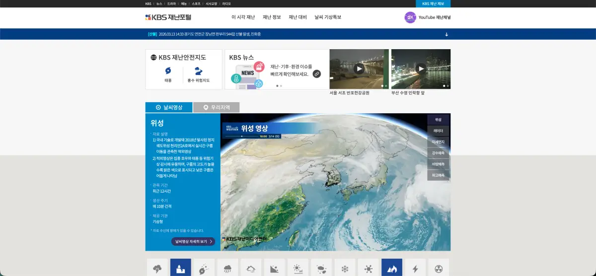 KBS에서 운영하는 재난 전용 포털에서는 실시간 재난 상황과 안전 정보를 빠르게 확인할 수 있습니다.