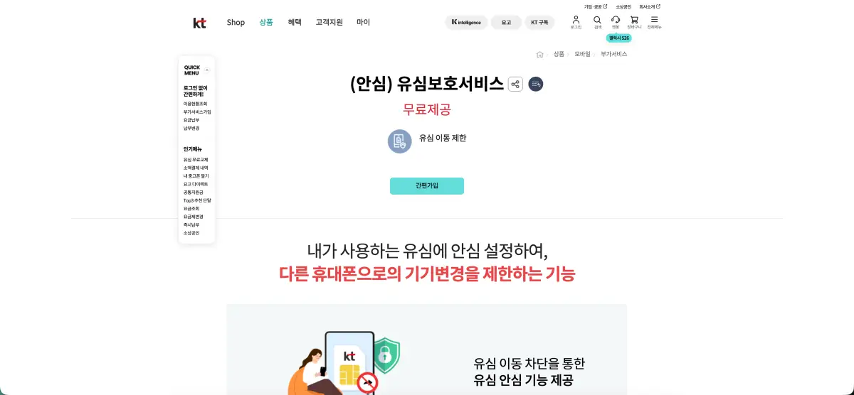 👉 KT 유심보호서비스 가입 공식 페이지 주소: product.kt.com/wDic/productDetail.do?ItemCode=1645